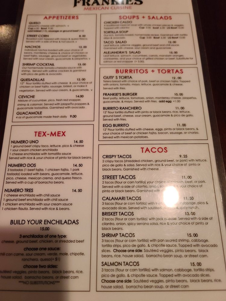 Frankie's Mexican Cuisine Menu (2025 Update)